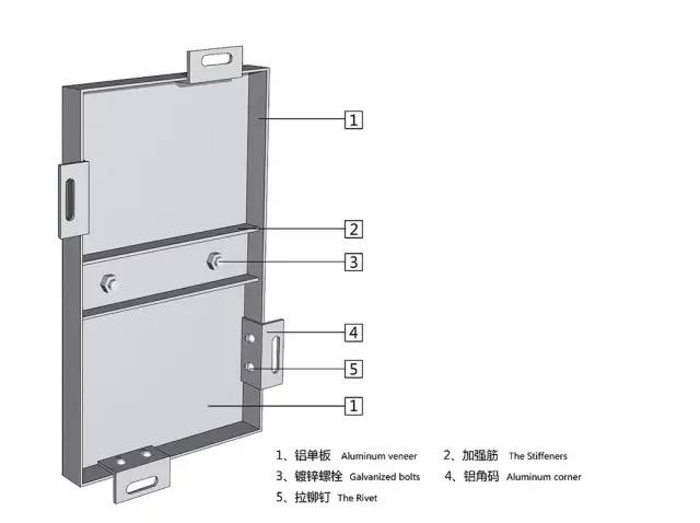 2、鋁單板-保溫夾芯板連接角碼用拉鉚釘固定,應固定牢固、位置正確。