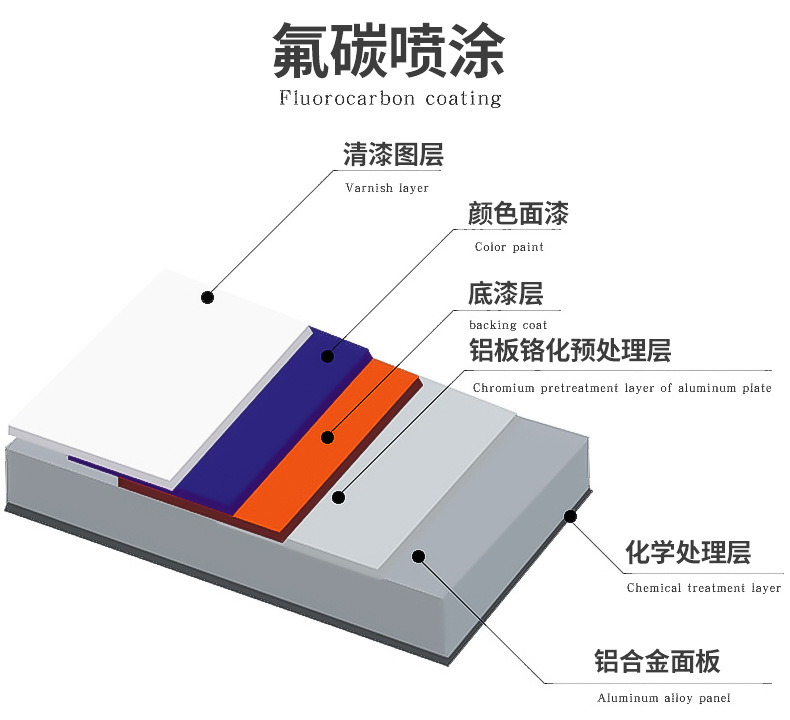 外墻氟碳鋁單板幕墻板采用優(yōu)質(zhì)1100、3003、5005單層鋁合金板為基材。表面涂層分為氟碳噴涂,粉末噴涂,聚酯漆噴涂、氟碳預輥涂。氟碳噴涂表面涂層按加工工藝分為二涂一烤,三涂一烤和三涂二烤,粉末噴涂表面涂層為一涂一烤。鋁板表面涂層性質(zhì)嚴格按客戶(hù)要求,顏色可由公司負責提供標準色卡供客戶(hù)選擇。